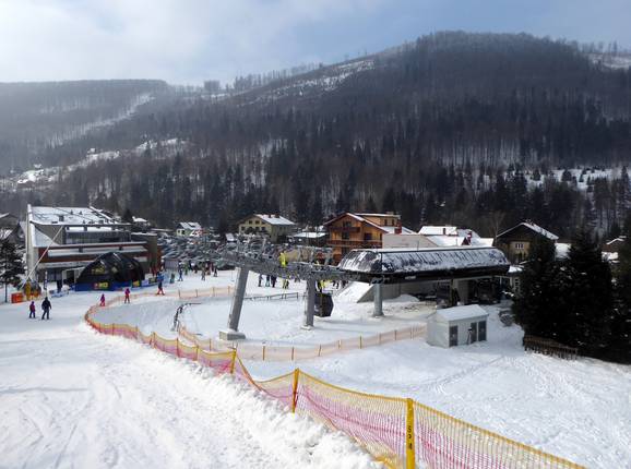 The Polish ski resort Szczyrk Mountain Resort is located in the Beskids, about 80 km south of Katowice. In general, the ski area is easily accessible via well-developed roads and without major inclines from the highway in the direction of Bielsko-Biała. There are 700 free parking spaces available at the Szczyrk Gondola. In Czyrna, you will find another 600 free parking spaces. At the base stations Solisko and Kl Skrzyczne, parking is subject to a fee. Additionally, there are many smaller private paid parking lots around the base stations.
