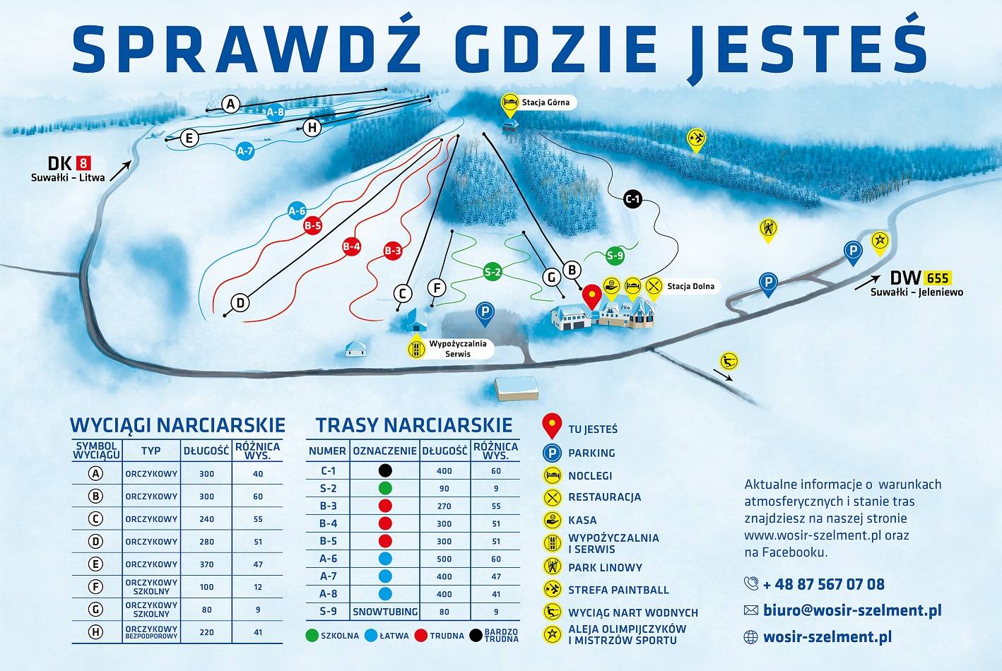 Leszczewo (1.1 km), Jeleniewo (5 km) Towns/villages at the ski resort