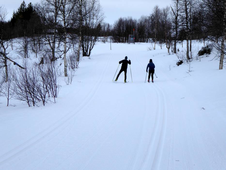 The trail is family-friendly and ranges from easy to intermediate, making it well-suited for beginners, children, and leisurely skiers, while also offering beautiful panoramic views of the lake and the surrounding fjell mountains.