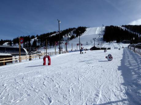 At the valley station in Tandådalen, there is another children's area with a covered conveyor belt. There is also a dedicated platter lift here. The very easy slope is equipped with Valle figures and other fun obstacles.