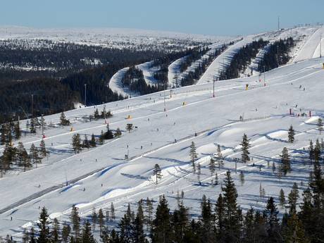 Right next to the valley station in Tandådalen, there is a large, separate area for families with children. Conveyor belts and platter lifts provide access to the gentle and wide slope. Fun figures complete the offer.
