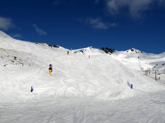 The Remarkables ski area offers slopes for all levels of difficulty. The runs are located in a kind of bowl with three skiable sides. Sugar Bowl (1870 m) and Curvey Basin (1900 m) mostly offer easy to intermediate slopes, while Shadow Basin (1943 m) features the more challenging runs and off-piste powder slopes. Additional challenging off-piste slopes lead down to the Remarkables Ski Field Access Road (shuttle bus connection). In the valley area, very easy slopes are served by a chairlift and conveyor belts.