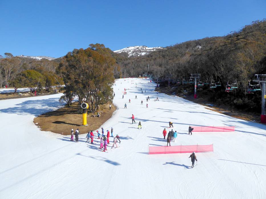 Beginners can carve down easy slopes from the highest point in Australia all the way to the valley. Almost the entire ski area can be accessed via easy slopes. Beginners feel especially comfortable at Fridays Flat. There are several conveyor belts and a four-seater chairlift dedicated to beginners. Thredbo also has a ski school that specializes in returning skiers and beginners.