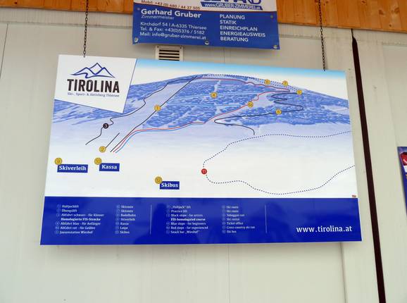 The slope map provides a good overview of the Tirolina ski area. Prices and additional information are also included.
