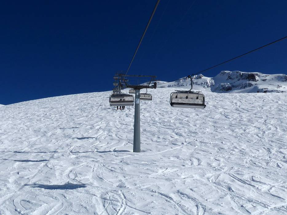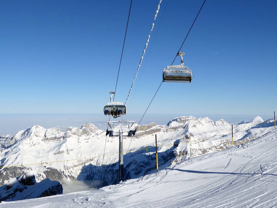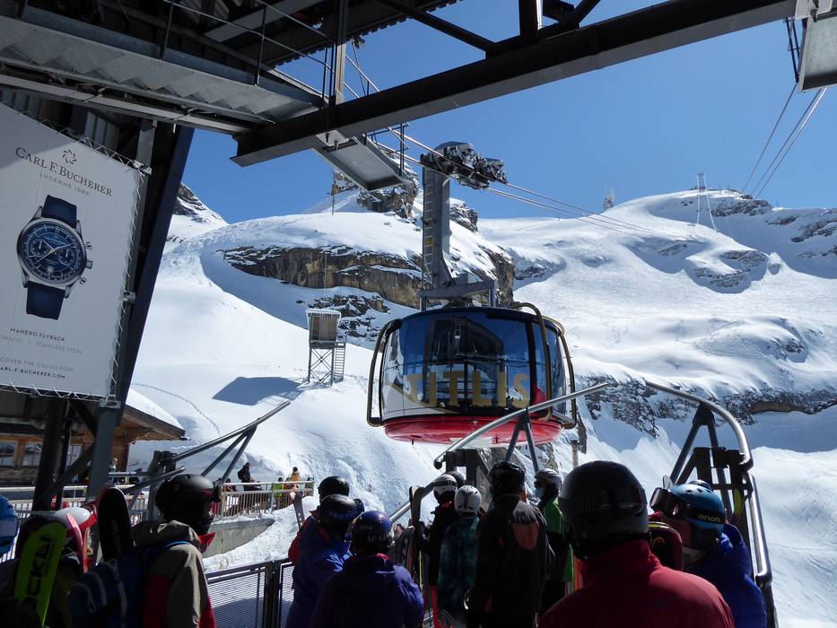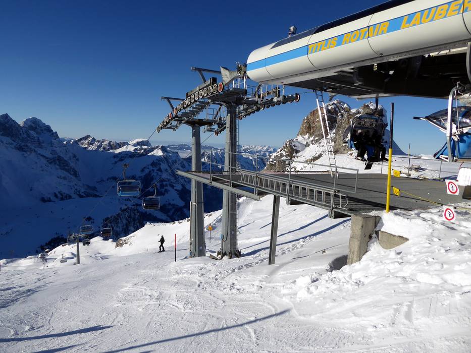 From Engelberg, the eight-seater gondola lift Titlis Xpress takes you comfortably up to the ski area at the Stand station in two sections. Afterwards, the Titlis-Rotair brings you up to the summit at 3,020 m. On the world’s first revolving cable car (Rotair), the cabin rotates 360 degrees during the five-minute ascent to the summit, offering perfect panoramic views of steep rock faces, deep glacier crevasses, and snow-covered mountain peaks. Additionally, a funicular railway and two aerial tramways also lead from the valley up to the ski area (operating only as additional lifts during peak times). Within the ski area, all high-speed chairlifts are equipped with weather protection covers and some even have heated seats. The fixed-grip four-seater chairlift Trübsee-Hopper crosses Lake Trübsee, connecting the slopes across the lake. Drag lifts on the Gerschnialp and at Untertrübsee complete the range of lifts. At Trübsee, there are also several conveyor belts.