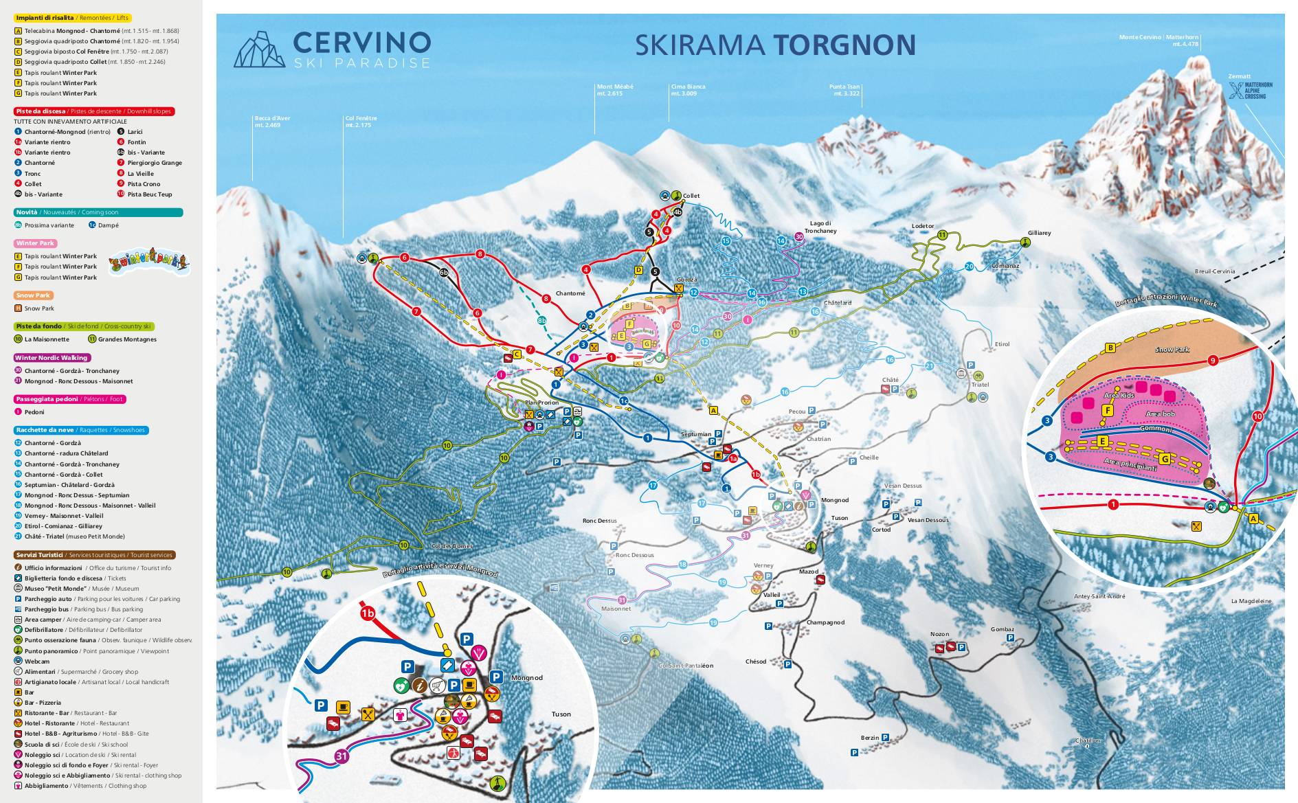 Mongnod (0.2 km), Torgnon (0.2 km) Towns/villages at the ski resort