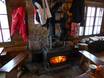 Le Refuge du Trappeur is a rustic wooden cabin with an open fireplace. Drinks and light snacks are served. In good weather, you can also relax in a deck chair in front of the cabin.