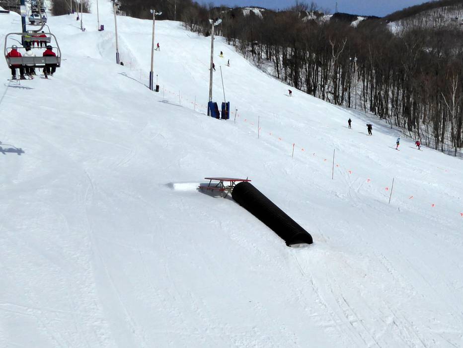 The Progression Park is located on the south side of the Tremblant ski area and offers sunshine all day long. The features are mostly of medium difficulty and are very well suited for intermediate freestyle skiers and snowboarders. The park is easily accessible via the TGV quad chairlift.