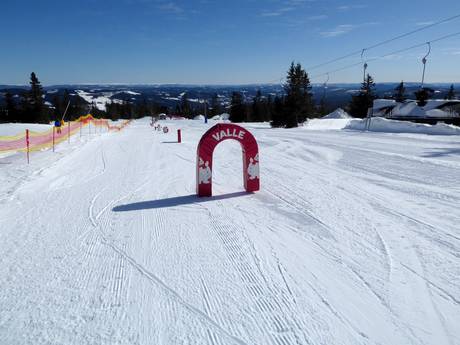 The children's area Eventyr is located below the Tourist Center between the platter lifts Fryvil (T4) and Eventyrheisene (T6). Here you will find several easy platter lifts and a conveyor belt. Fun Valle figures encourage children to ski. An adventure course, slalom run, and a toboggan run complete the offerings. Here, children can also meet Valle and take part in activities such as theater, treasure hunts, and Valle's show.