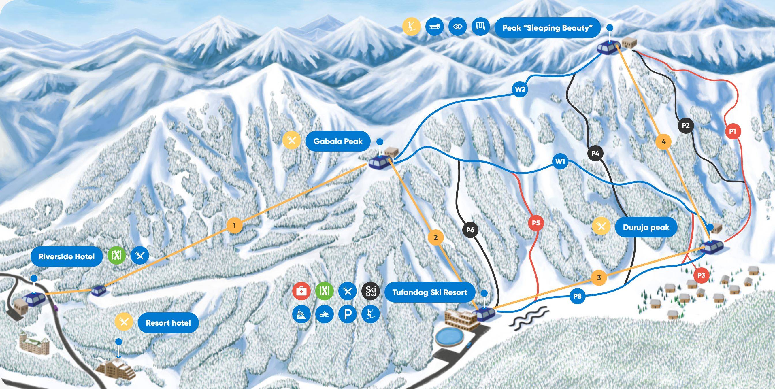 Duruja (0.3 km), Qabala (4 km) Towns/villages at the ski resort