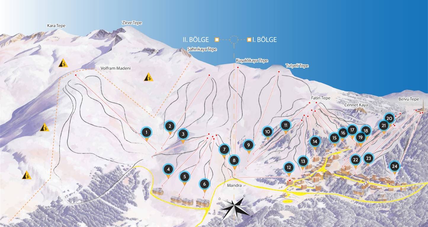 Bursa (2.2 km), Osmangazi (5 km) Towns/villages at the ski resort