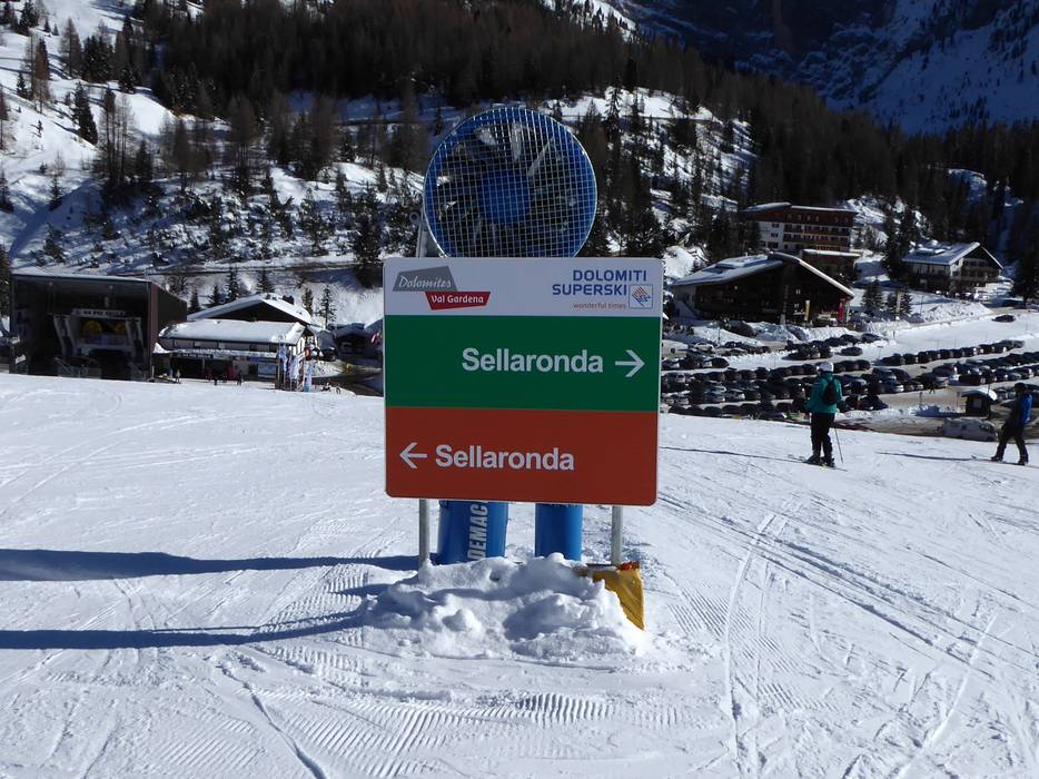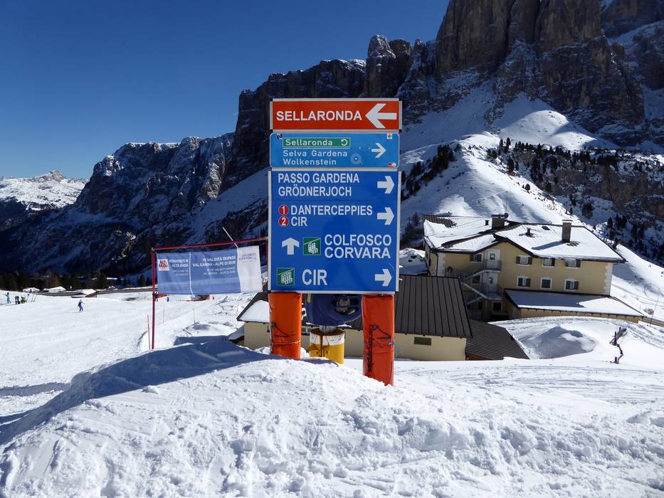 The presentation of the Sellaronda (circuit around the Sella massif) is ideal. The two colors, green and orange, clearly indicate the different directions around the Sella massif. However, comprehensive information boards could be added in some places, and more up-to-date operational information could be provided.