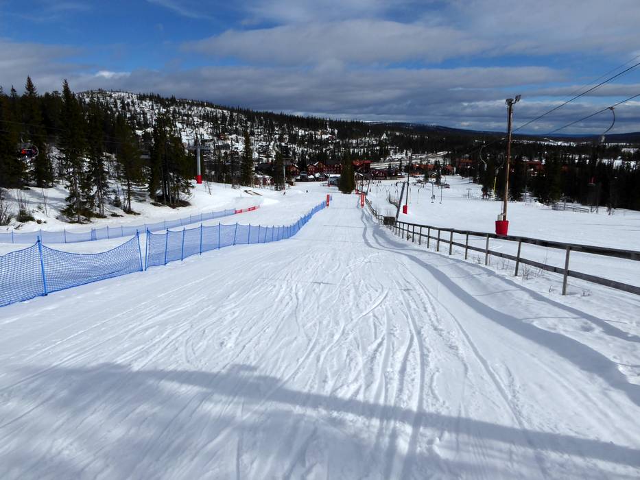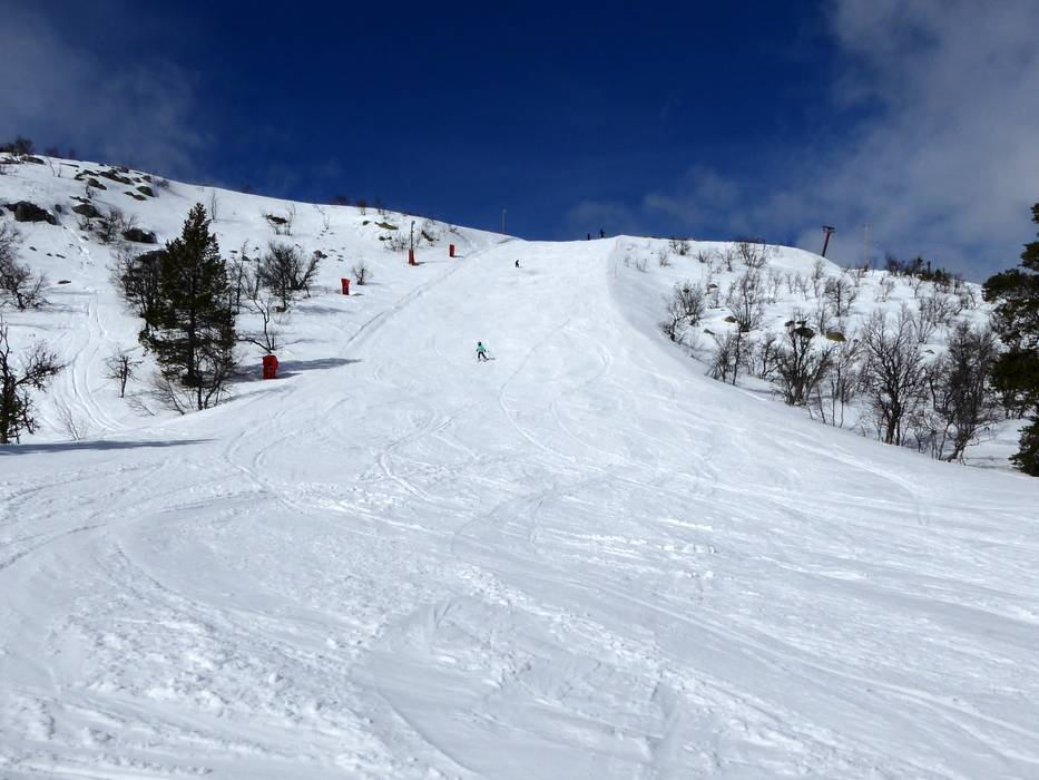 The easy slope Hildings leads from Skalsfjället down to the valley station of the Hovde Express.