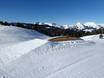 The Snowpark Bretaye in Villars is located at Chaux Ronde and is easily accessible via the 8-seater chairlift Lac Noir-Chaux Ronde. The larger obstacles are found in the upper section, while beginners will also find suitable features further down. From the deckchair at the Bar Chez Jimmy, you have a great view of the first part of the park.