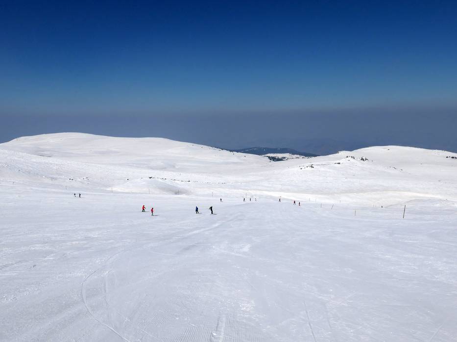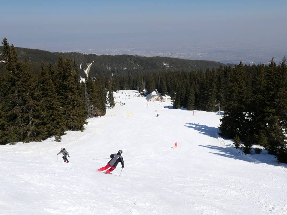 Intermediate slope with a view of Sofia and the oldest slope in the ski area