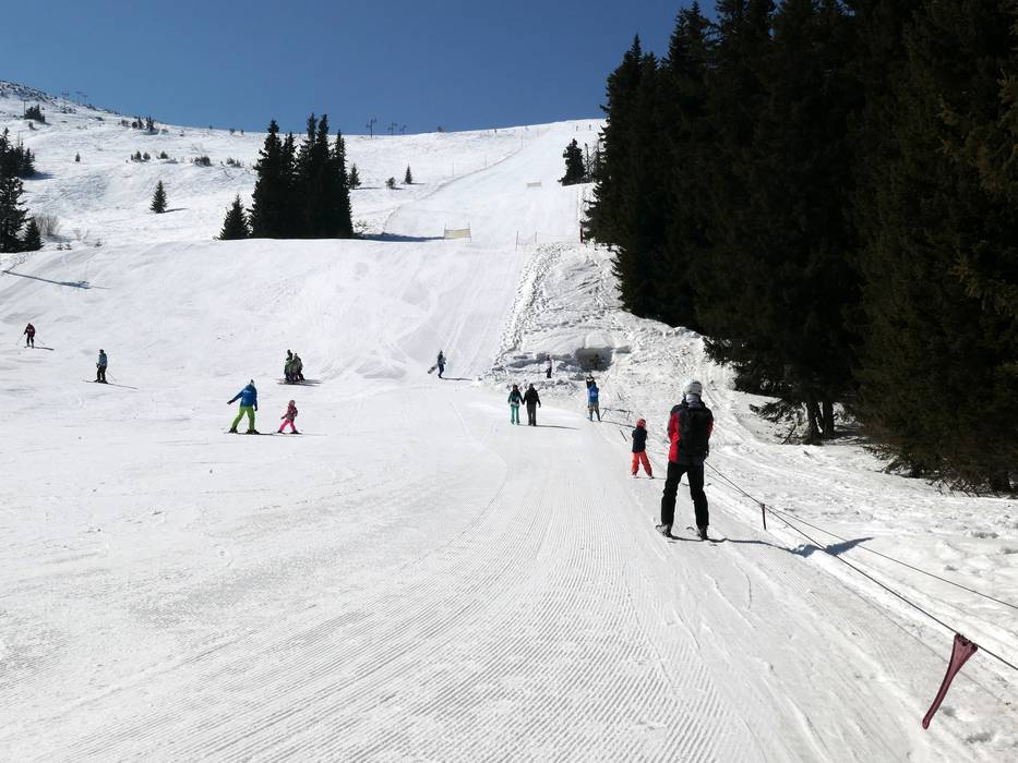 Near the mountain station of the gondola, many practice lifts are available: conveyor belt, platter lifts, as well as additional separately operated rope tows that are not included in the regular ski pass. Ski schools are available to take care of the children.
