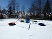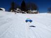 Directly at the mountain station, there is a very nice area with a conveyor belt and fun figures. A children's carousel completes the offer. Here, little ones can practice their first turns in peace. Entry to the park is free; only the ascent and descent with the cable car need to be paid for.