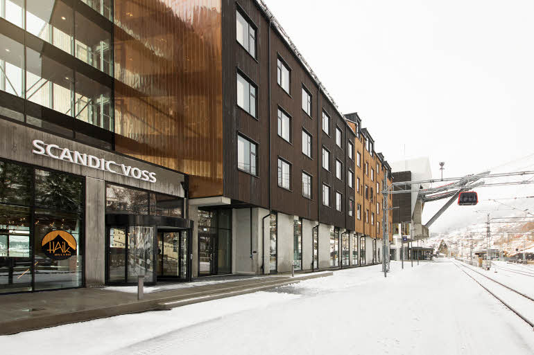 The Scandic Voss Hotel offers 215 rooms, a restaurant with a bar and outdoor seating, as well as stylish and flexible conference areas. As the largest hotel in the city and thanks to its central location right next to the train station and the gondola, the Scandic Voss is a very popular hotel in Voss among both tourists and locals.