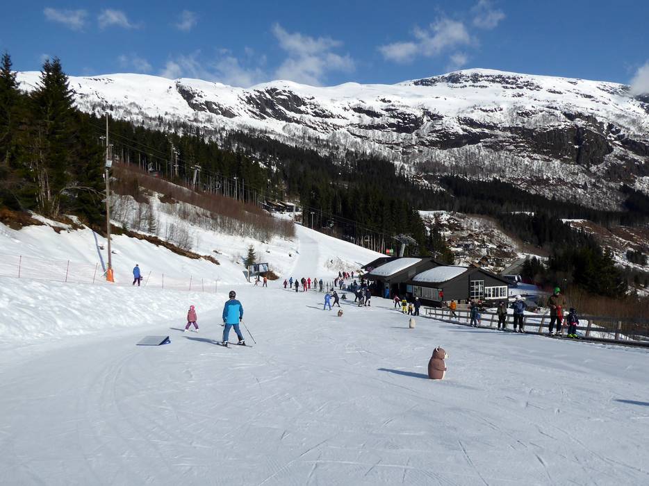 The children's area Trollbakken is located right next to the mountain station of the gondola at Hangurstoppen. An easy slope is served by a covered conveyor belt. The distances to dining and restroom facilities as well as to the ski school with ski rental are short.