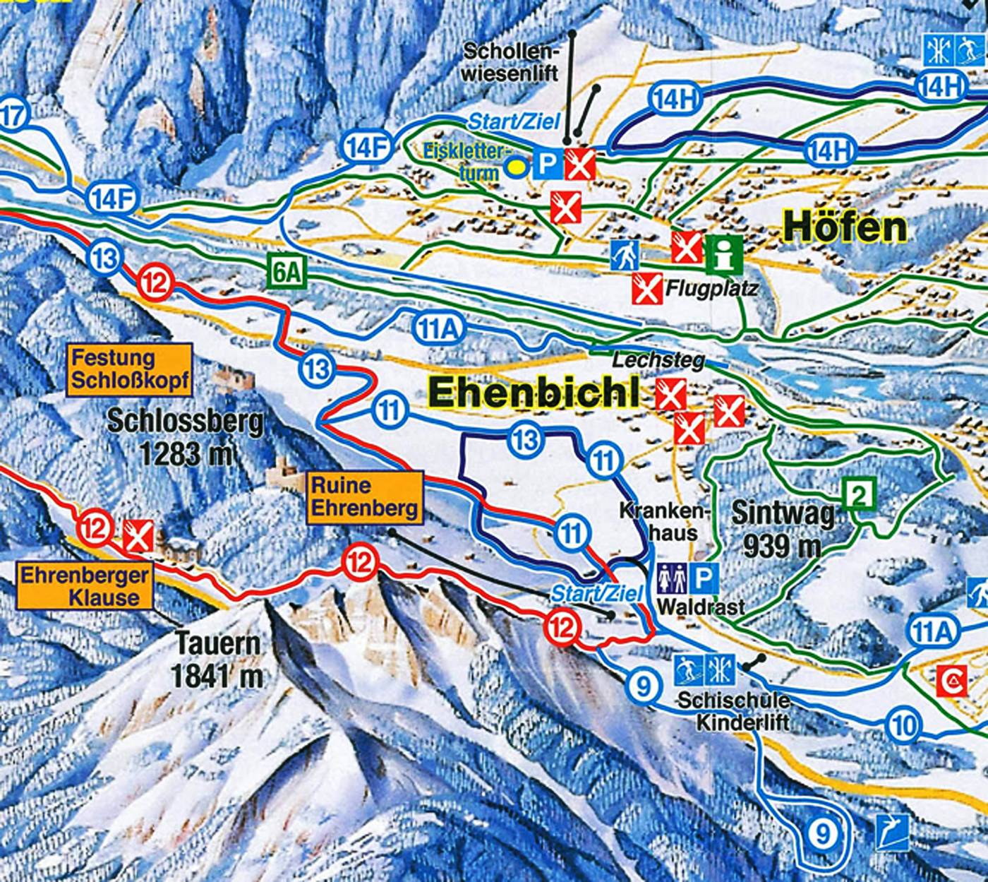 Ehenbichl (1.2 km), Reutte (2.2 km) Towns/villages at the ski resort