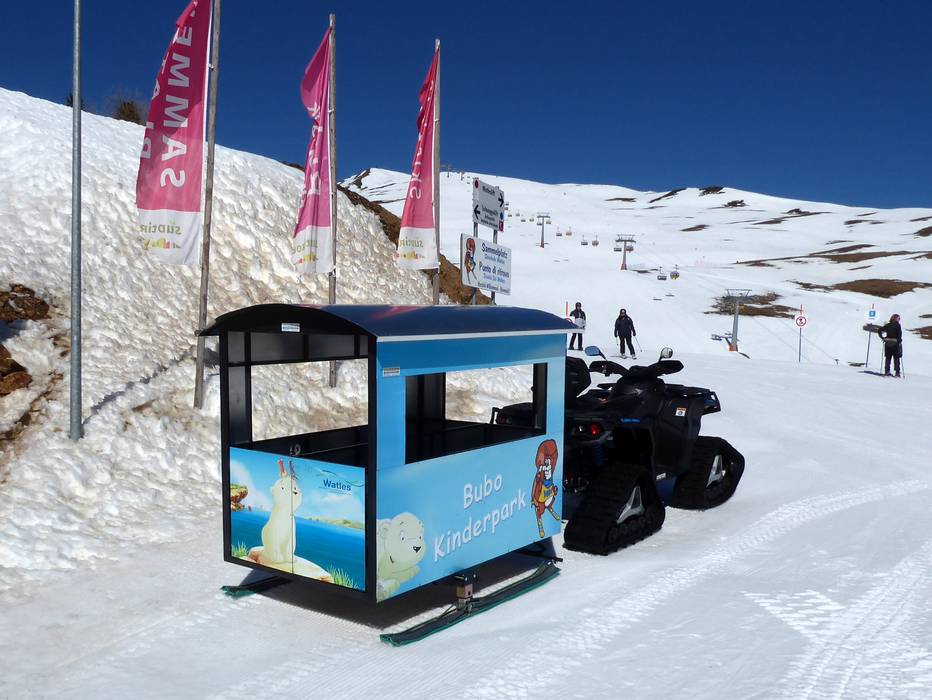 The Bubo Kinderpark is located at the mid-station at around 2,150 meters altitude and offers a conveyor belt. Here, little ones can practice their turns in a relaxed environment. Fun figures complete the experience. Right next door, there is a platter lift.
