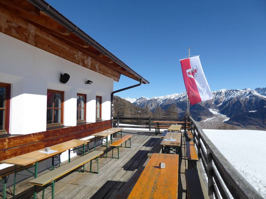 The Plantapatschhütte is located in a very sunny spot in the middle of the Watles ski area. The large sun terrace with a view of the Vinschgau valley invites you to linger. On cold days, you can take a break inside the hut. Regional specialties are served.