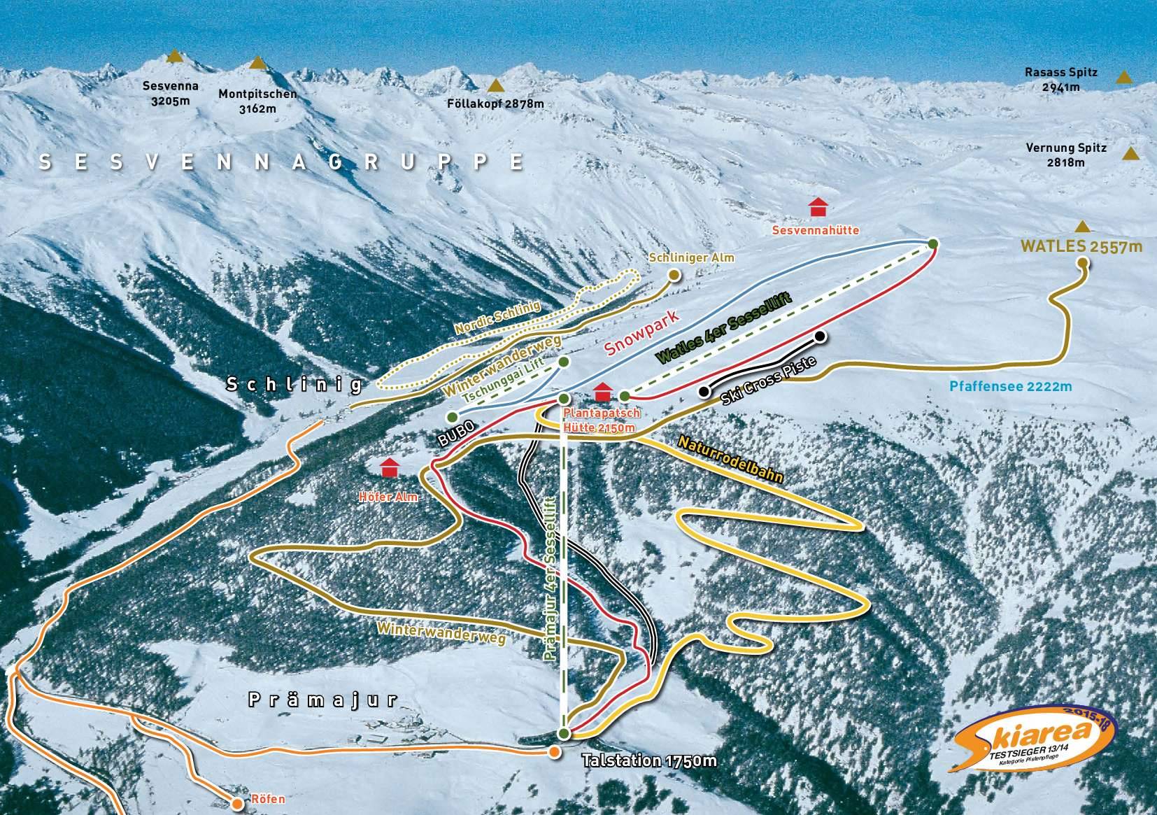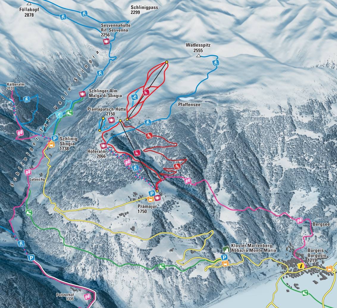 Prämajur (0.3 km), Schlinig (Slingia) (4 km), Burgeis (Burgusio) (7 km), Towns/villages at the ski resort
