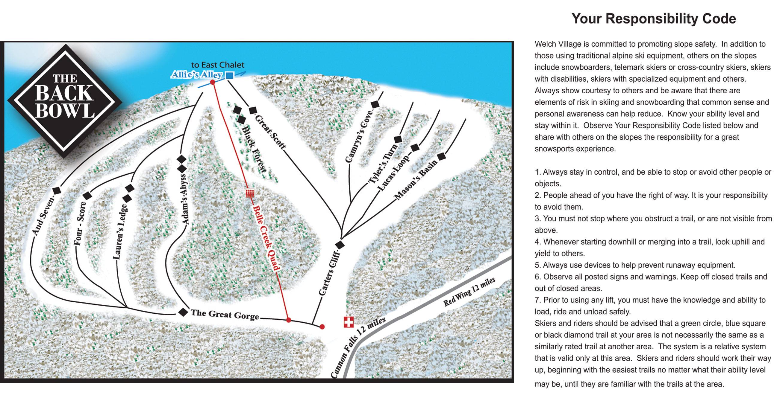 Trail map Welch Village Backbowl Season 2025/2026