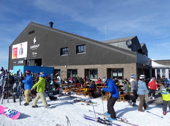 The mountain inn Gamsalp offers an appealing self-service area and the rustic Stübli. In the Stübli, guests are warmly served and can enjoy Swiss specialties. The cheese fondue is highly recommended. On beautiful days, you can also sit outside and enjoy the sun in the deck chairs.