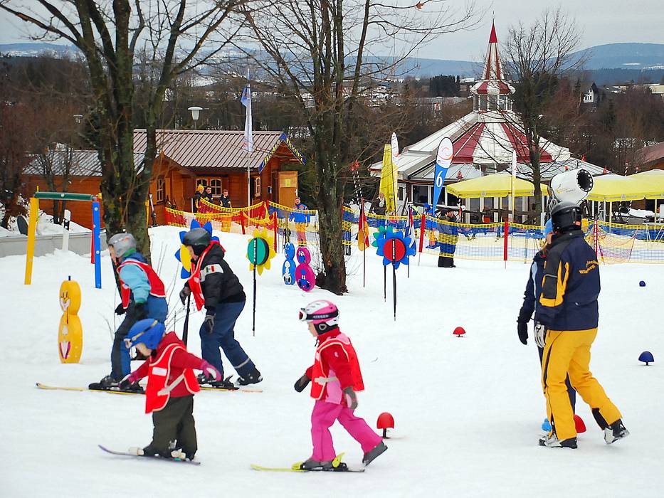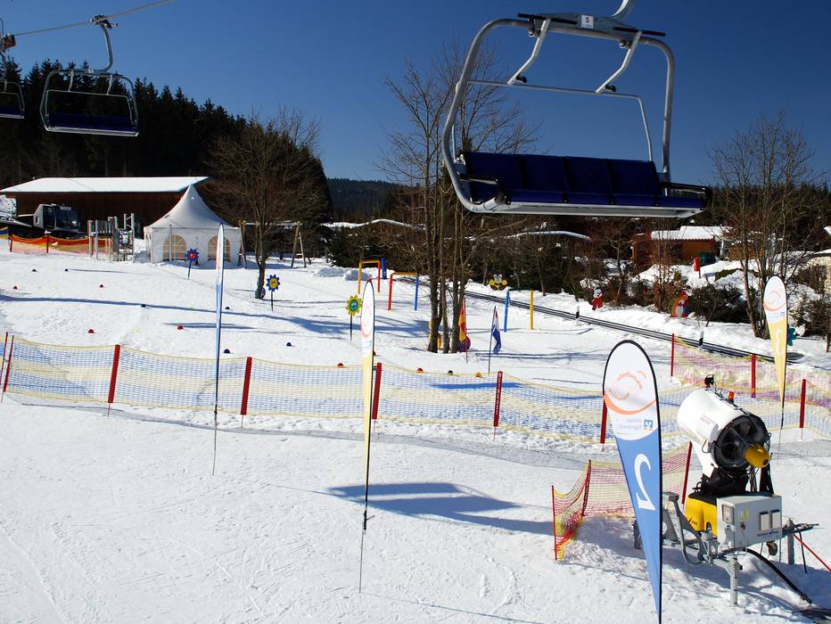 At Herrloh, there is a colorful Kinderland covering around 10,000 square meters, featuring a magic carpet, colorful figures, a tipi tent, and various courses. There is also a Kinderland at the four-seater chairlift Rauher Busch (No. 12), with all kinds of games and a conveyor belt. There, the Neue Skischule Winterberg offers supervision for kids from the age of 3 during holidays and on weekends for children aged 3 to 4 (however, not during lunchtime, but only during course hours).
