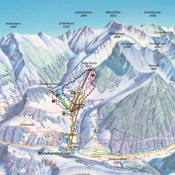 Zwischenflüh (1.3 km), Diemtigen (7 km) Towns/villages at the ski resort