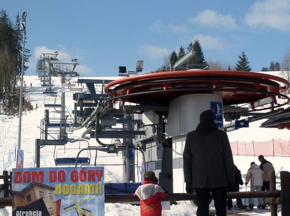 A modern four-seater chairlift with conveyor belt entry and a platter lift provide access to the entire ski area.