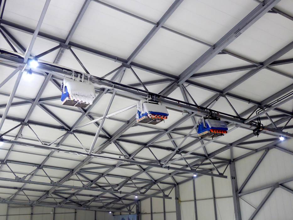 In the indoor ski hall, snow cannons and a snowmaking system from the ceiling always provide fresh snow. Air circulation cooling units and refrigeration machines ensure an average hall temperature of -1.5°C. This means that optimal snow conditions are always maintained in the ski hall.