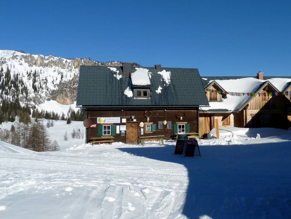 Rustic mountain hut with regional delicacies. Easily accessible from the mountain station of the Wurzeralmbahn. On sunny days, you can sit comfortably in front of the hut.