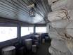 The Café Gondol is used for three purposes. During the day, it serves as a café with snacks, and after operating hours, the gondolas from the lift are stored in this space. The sauna gondola is also kept in this café. After the ski operations have ended, this sauna gondola can be rented for sauna sessions on the gondola route for around €1,500.