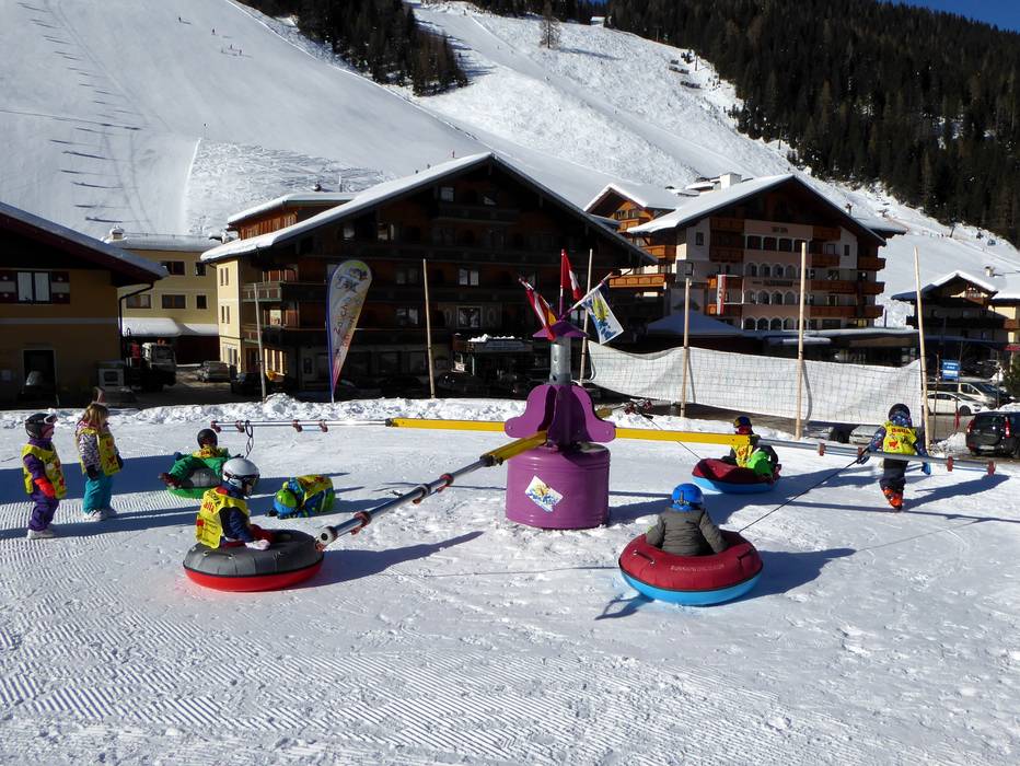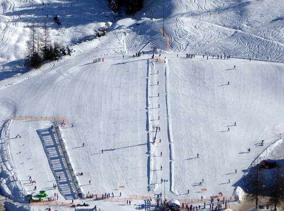 Directly next to the World Cup Arena is the lovingly designed, public Zauchi's Kinderland. Access is not tied to booking a ski course. A covered magic carpet, platter lift and practice slope, children's carousel, and trained staff make it ideal for first ski attempts.