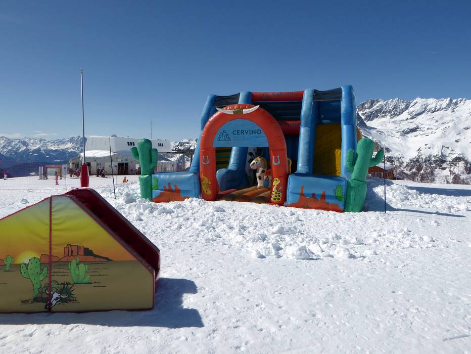 The children's area is located in Salette at the mountain station of the Valtournenche gondola. In addition to the large "Wild West Zone" playground, there are several conveyor belts for practice. The entire area is very sunny and snow-sure. A snow tubing run provides even more fun.