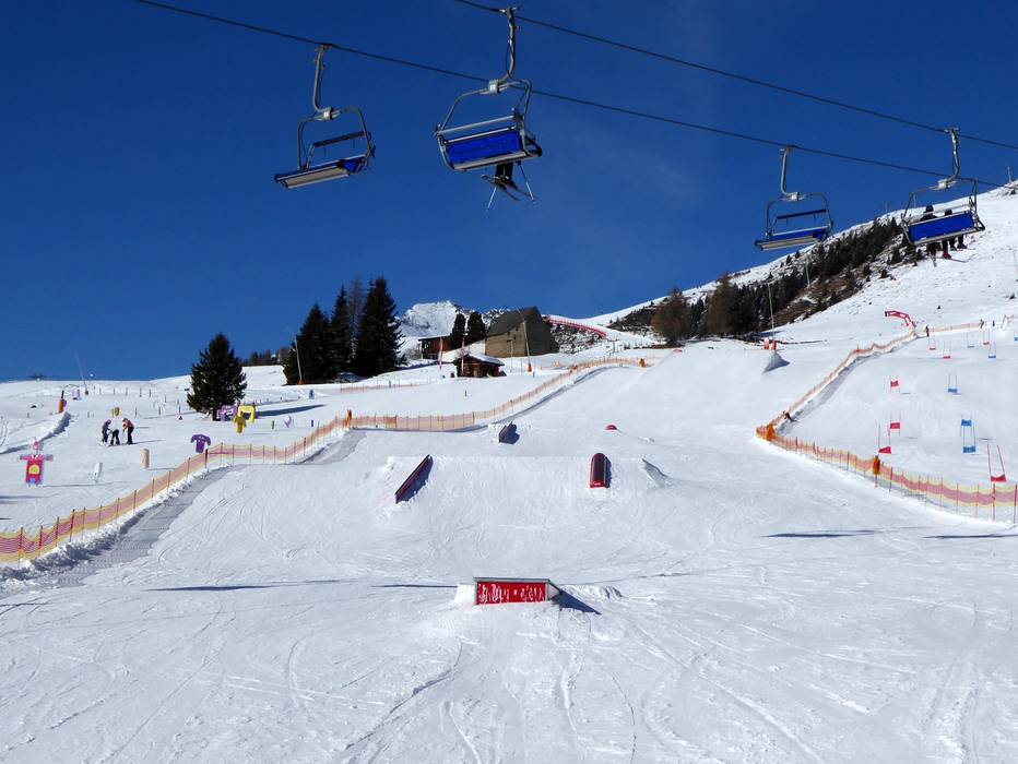 The Sunsitepark is located in the Fun & Race Area at Zettersfeld and consists of two lines with kickers, rails, and boxes. There are also some event features. Right next to it is the Kids Area with small obstacles.