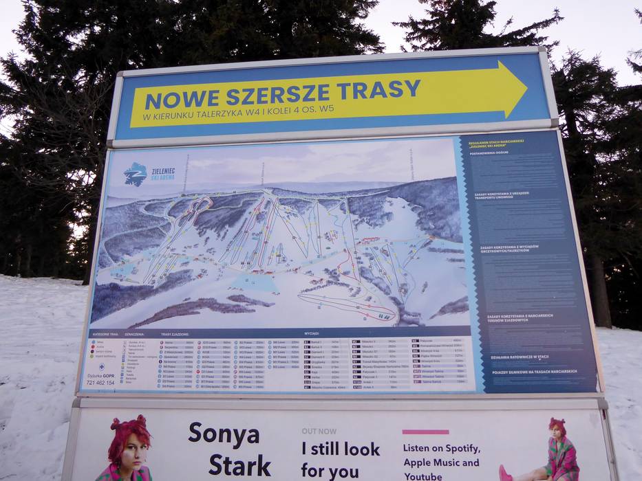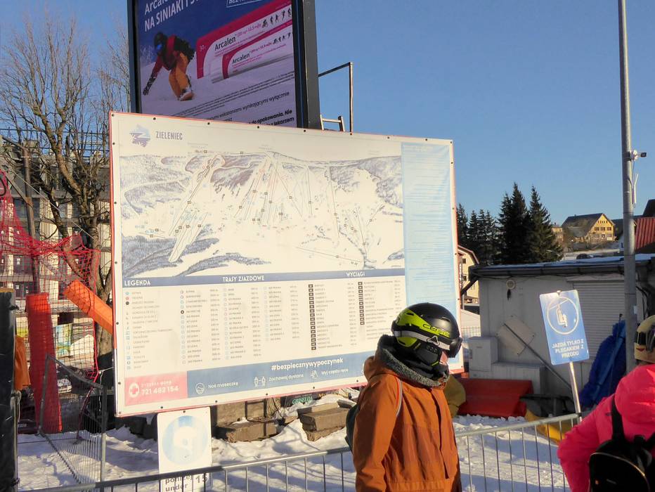 Clear piste maps are available at all key points in the Zieleniec ski area to help you find your way. Most of the slopes are well signposted, making navigation easy. However, up-to-date operational information, such as which lifts and slopes are open, is only available on the website.