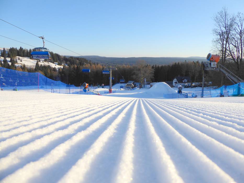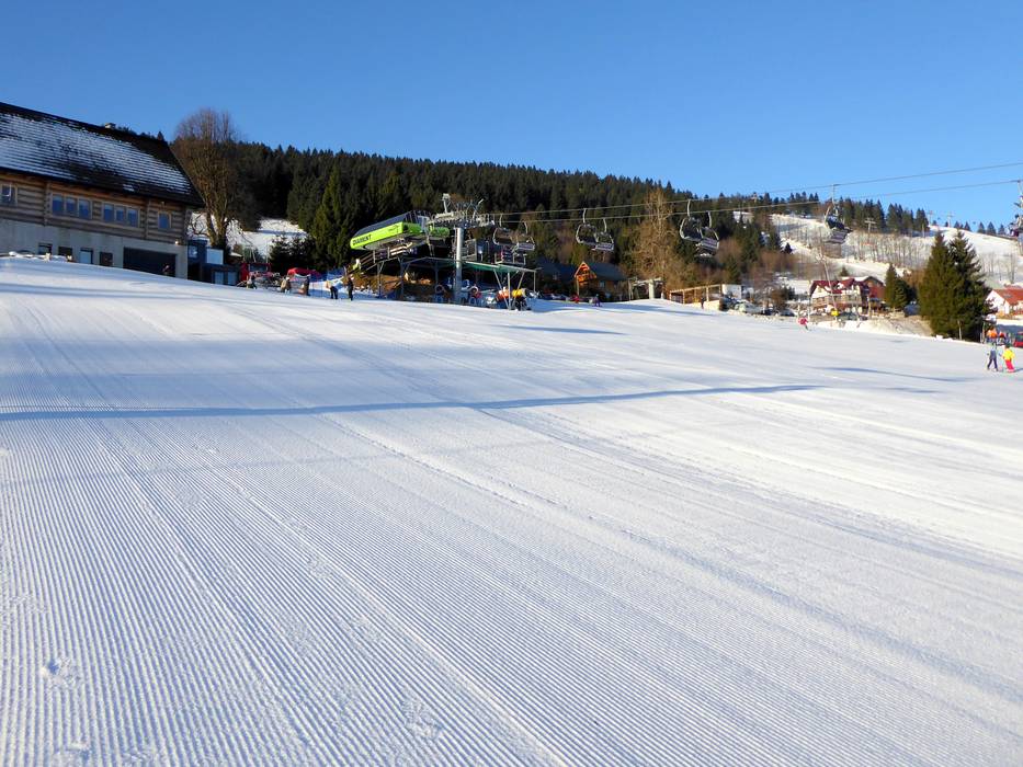 The slopes in the Zieleniec ski area are groomed daily with modern snow groomers. The runs are consistently smooth, even, and perfectly maintained, ensuring that skiers and snowboarders always find optimal conditions.