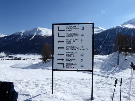At some stations, information boards with up-to-date information are provided. The signage on the slopes could be improved, and more current information in the ski area would be desirable.