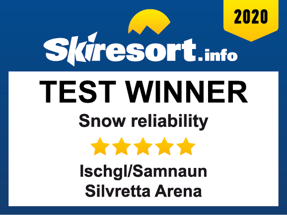 The ski resort Ischgl/Samnaun – Silvretta Arena has been distinguished by Skiresort.info, the world’s largest test portal for ski resorts, as the Test Winner 2020 in the category “Snow reliability”