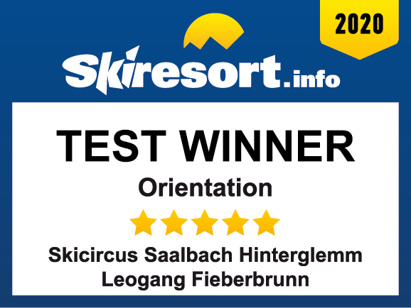 The ski resort Skicircus Saalbach Hinterglemm Leogang Fieberbrunn has been distinguished by Skiresort.info, the world’s largest test portal for ski resorts, as the Test Winner 2020 in the category “Orientation (Trail Map, Information Boards, Sign-postings)”