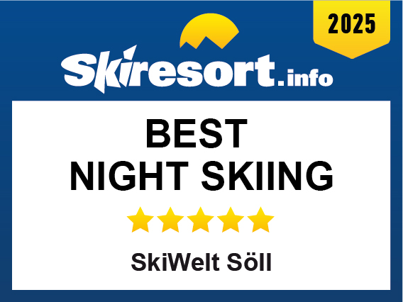 The night skiing at SkiWelt Söll ski resort has been distinguished by Skiresort.info, the world’s largest test portal for ski resorts, as the best night skiing 2025.