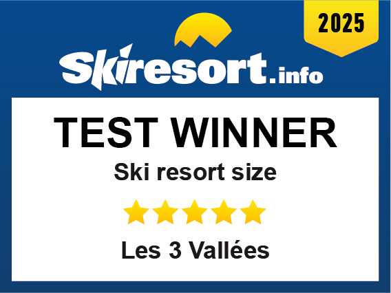 The ski resort Les 3 Vallées has been distinguished by Skiresort.info, the world’s largest test portal for ski resorts, as the Test Winner 2025 in the category “Ski resort size”