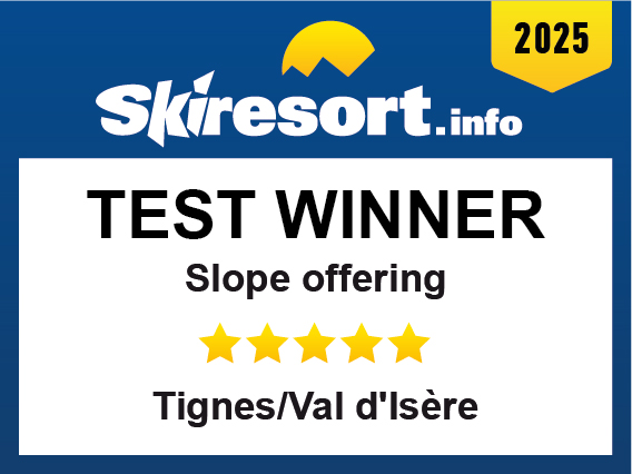 The ski resort Tignes/Val d'Isère has been distinguished by Skiresort.info, the world’s largest test portal for ski resorts, as the Test Winner 2025 in the category “Slope offering”