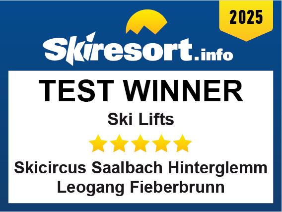 The ski resort Saalbach Hinterglemm Leogang Fieberbrunn (Skicircus) has been distinguished by Skiresort.info, the world’s largest test portal for ski resorts, as the Test Winner 2025 in the category “Ski lifts and cable cars”
