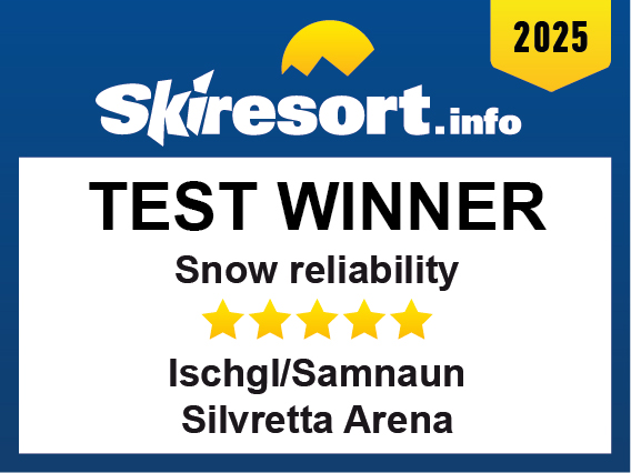 The ski resort Ischgl/Samnaun – Silvretta Arena has been distinguished by Skiresort.info, the world’s largest test portal for ski resorts, as the Test Winner 2025 in the category “Snow reliability”