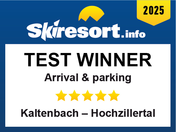 The ski resort Kaltenbach – Hochzillertal has been distinguished by Skiresort.info, the world’s largest test portal for ski resorts, as the Test Winner 2025 in the category “Arrival & parking”