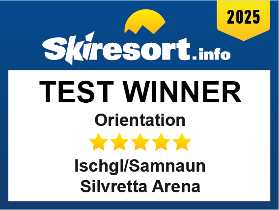The ski resort Ischgl/Samnaun – Silvretta Arena has been distinguished by Skiresort.info, the world’s largest test portal for ski resorts, as the Test Winner 2025 in the category “Orientation (Trail Map, Information Boards, Sign-postings)”